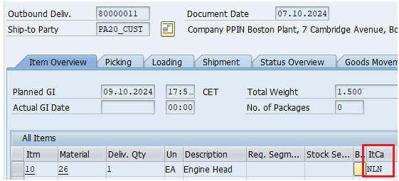 Item Category in Outbound delivery for 2-Step STO with Delivery