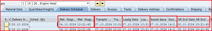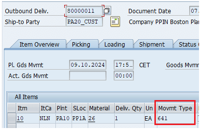 - Loading time is 4 hrs. so 07.10.2024 10:21:45 +4 hrs. = 07.10.2024, 14:21:45 , this will be goods issue date