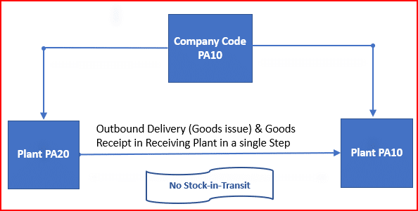 –> Sending plant is PA20 and receiving plant is PA10. Both the plants are attached with same company code (PA10).