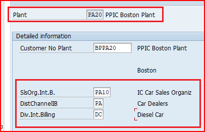 Receiving plant PA20 will be represented as a customer through customer number “PA20_CUST” as per this configuration