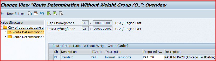SPRO –> Logistics Execution –> Transportation –> Basic Transportation Functions –> Routes –> Route Determination –> Maintain Route Determination
