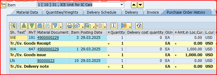 --> For our car business, we will use standard document type "UD" for the 1-step as well as 2-step Stock Transfer Order with Delivery"