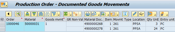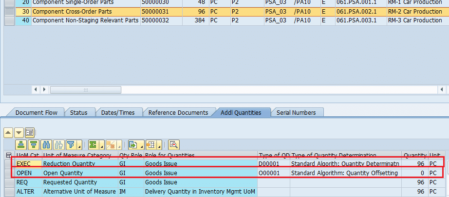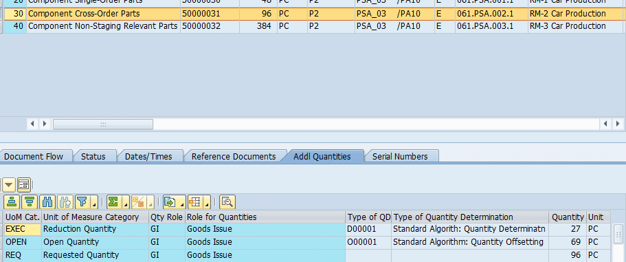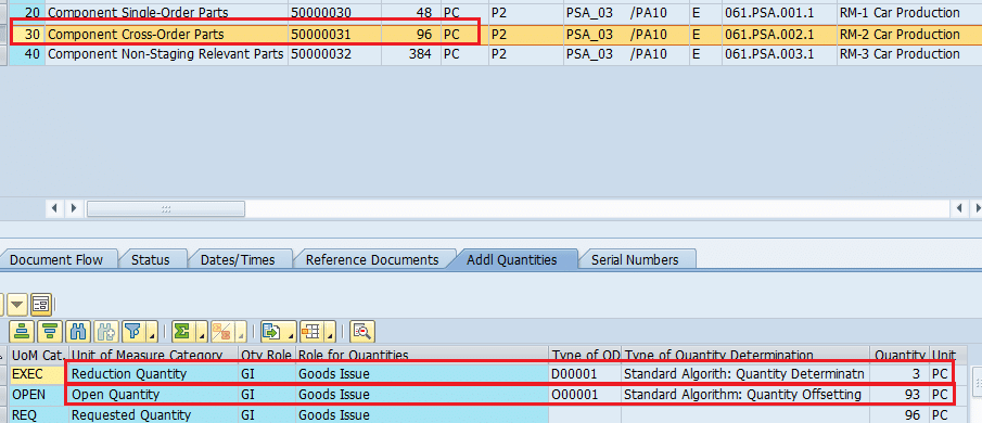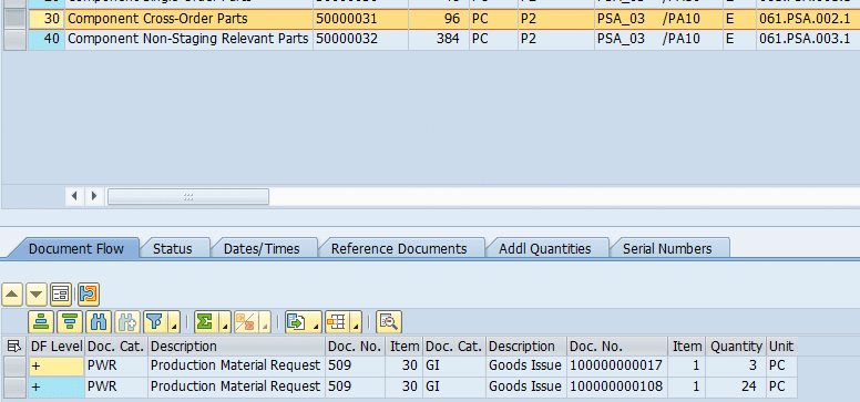 Out of this requested quantity of 96 PC for cross Order staging in PMR number 509, 3 PC is already consumed.