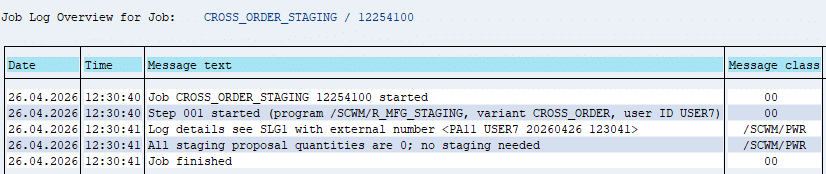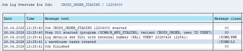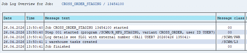 Operationally, cross-order staging is managed through transaction /SCWM/STAGE, often automated via scheduled batch jobs to ensure continuous production flow.