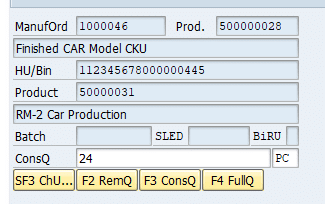 Start /SCWM/RFUI , Outbound Processes -> Consumption -> Consumption by Manufacturing Order
