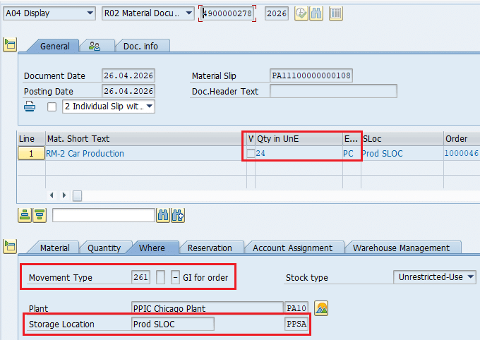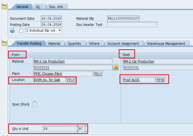 - Since Stock Type F2 is linked with PP1S & Stock Type P2 is linked with PPSA, so system will post a Material Document with 411 Movement Type (SLOC to SLOC Transfer) to update the SLOC from PP1S to PPSA.