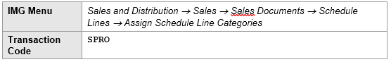SPRO –> Sales and Distribution –> Sales –> Sales Documents –> Schedule Lines –> Define Schedule Line Categories
