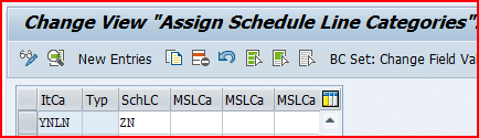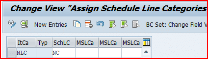 based on the item category “NLC” , schedule line “NC” is determined as per the configuration given in the below screenshot