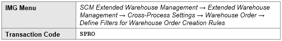 2. Define Filters for Warehouse Order Creation Rules