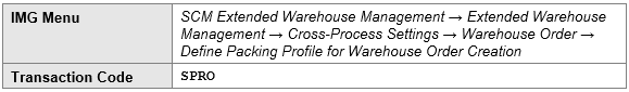 if you want to use a specific profile you defined in Define Packing Profile for Warehouse Order Creation. At this point, warehouse order creation uses the packing profile to determine the shipping handling units.